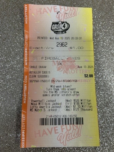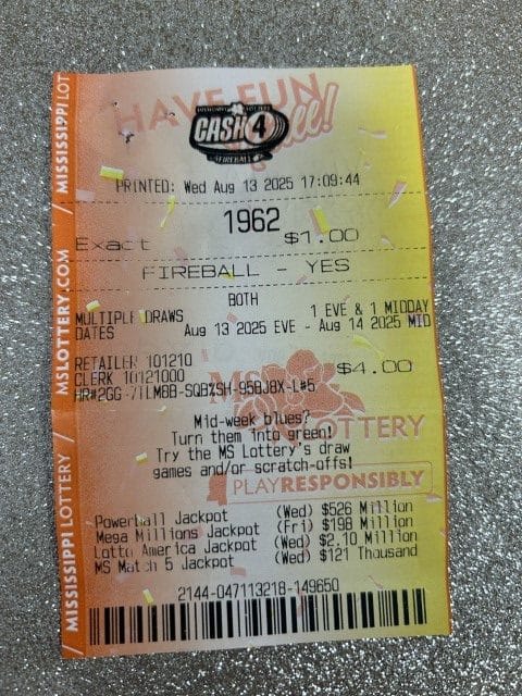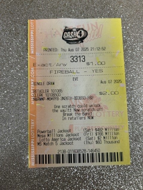 A Hermanville man won $2,700 on a Cash 4 ticket from Food Mart in Vicksburg.