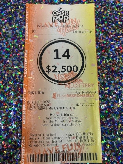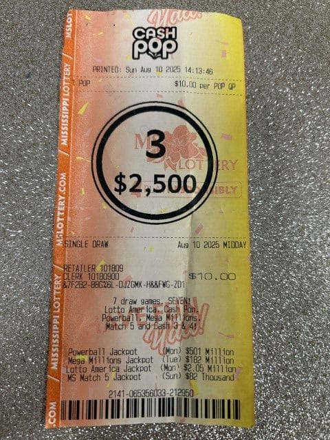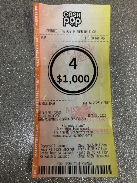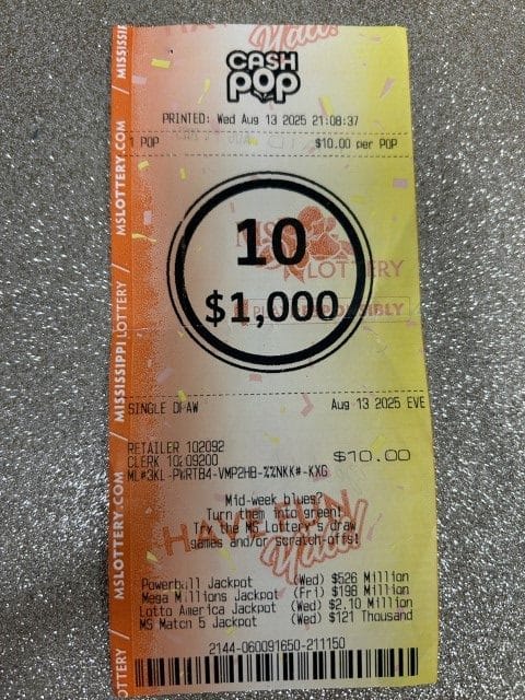 A Pearl man won $1,000 on a Cash Pop ticket from Quick Food Mart in Pearl.