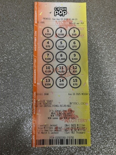 A Jackson woman won $1,000 on a Cash Pop ticket from Sunrise Food Mart in Ridgeland.