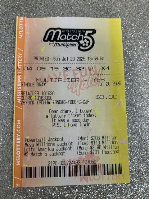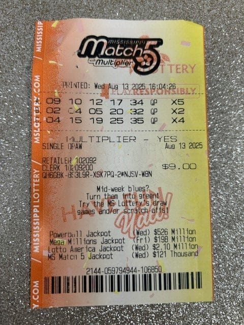 A Van Cleave man won $800 on a Match 5 ticket from K & D Convenience Store in Biloxi.
