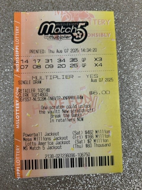 A Natchez man won $800 on a Match 5 ticket from 61 Hill Food & Fuel in Natchez.