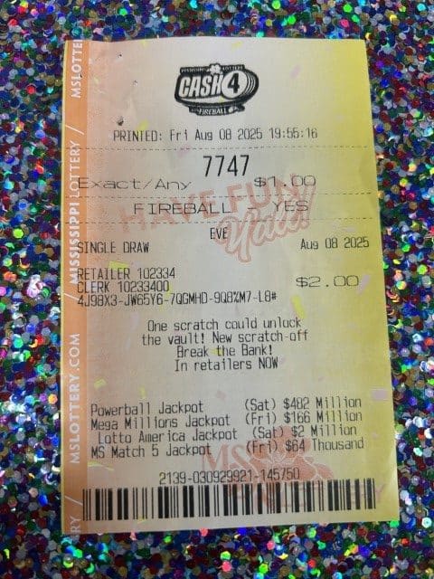 A Starkville player won $1,000 on a $20 scratch-off ticket from Down The Hatch in Starkville.
