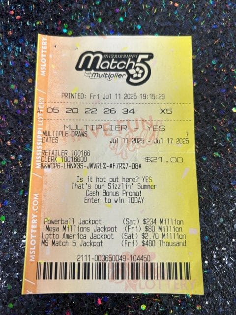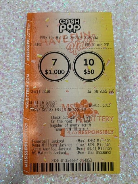 A Hattiesburg man won $1,000 on a $20 scratch-off ticket from Keith’s Superstore #173 in Hattiesburg.