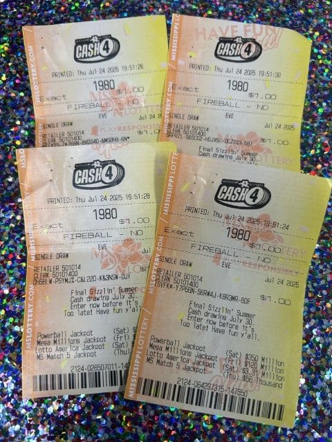 A Pheba man won $20,000 on four Cash 4 tickets from Sprint Mart #45 in Tupelo.