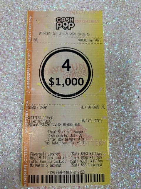 A Casscilla man won $1,000 on a Cash Pop ticket from Gpm #7243 in Charleston.