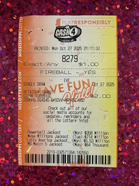A Pearl man won $2,600 on a Cash 4 ticket from Brandon Texaco in Brandon.