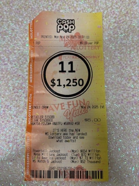 A Pearl woman won $1,250 on a Cash Pop ticket from Circle K Store #2723859 in Brandon.