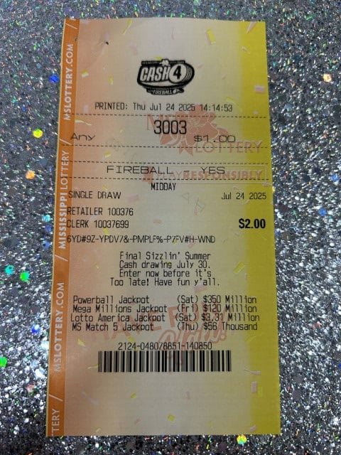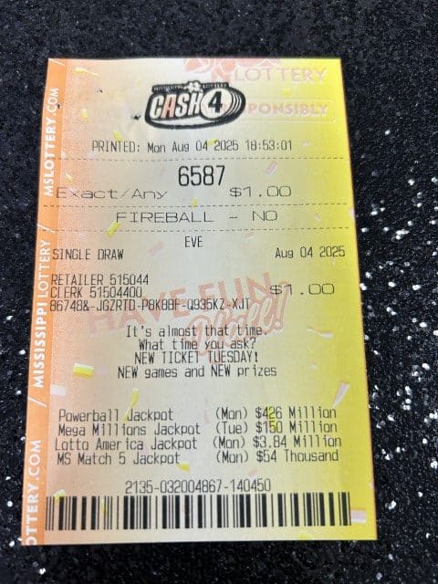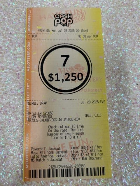A Pearl man won $3,945 on two Cash 4 tickets from Blue Sky Store #607 in Brandon.