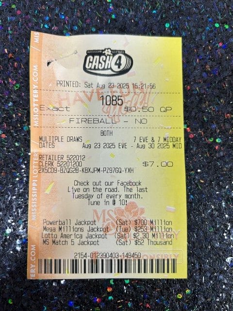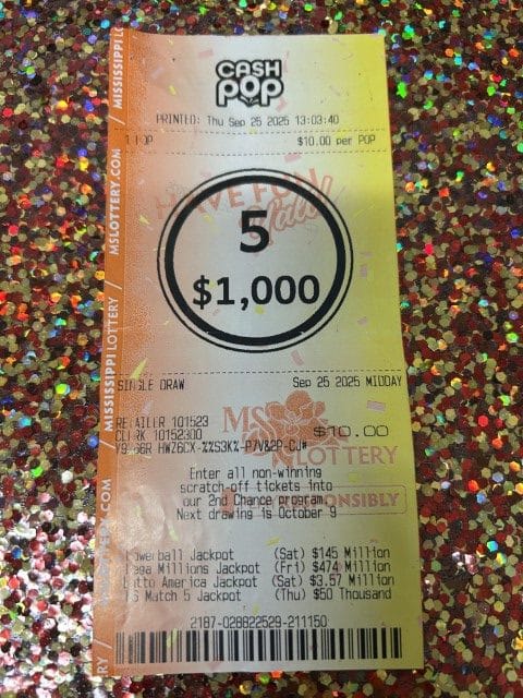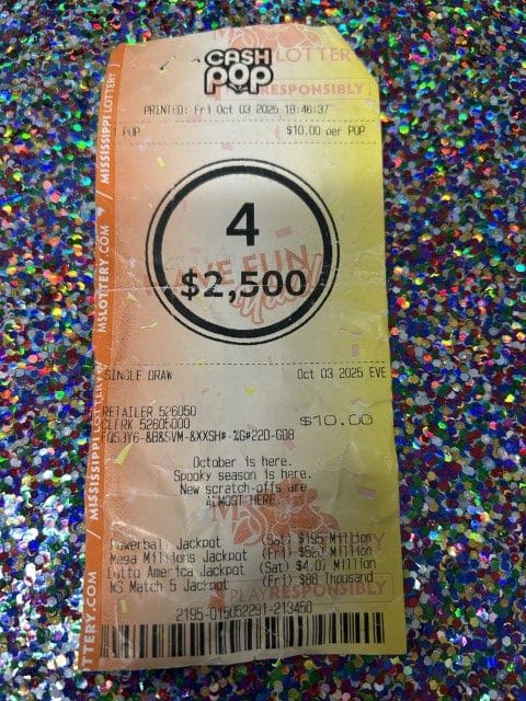 A Durant man won $2,500 on a Cash 4 ticket from Kroger #388 in Brandon.