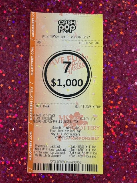 A Lena man won $1,000 on a $20 scratch-off ticket from Lake Harbor Trade Depot in Brandon.