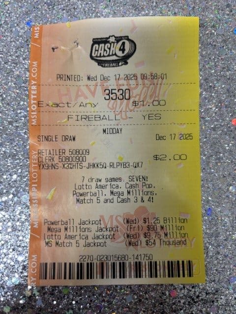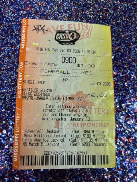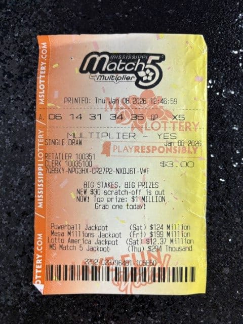 A Wesson man won $1,000 on a Match 5 ticket from Tobacco Mart in Brookhaven.