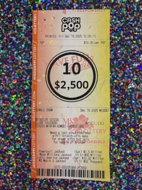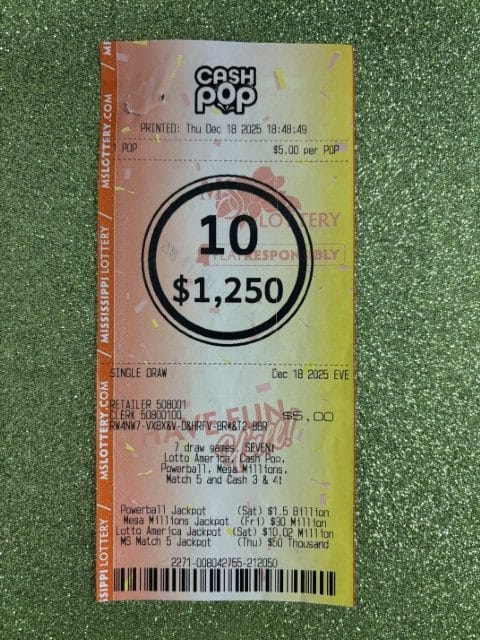 A Brandon man won $1,250 on a Cash Pop ticket from B-Kwik #1 in Brookhaven.