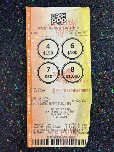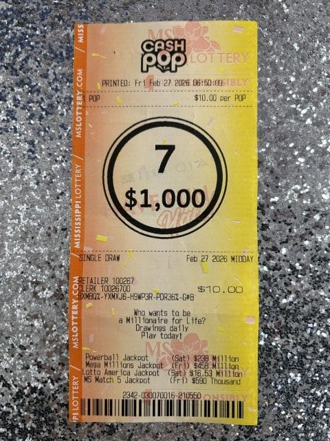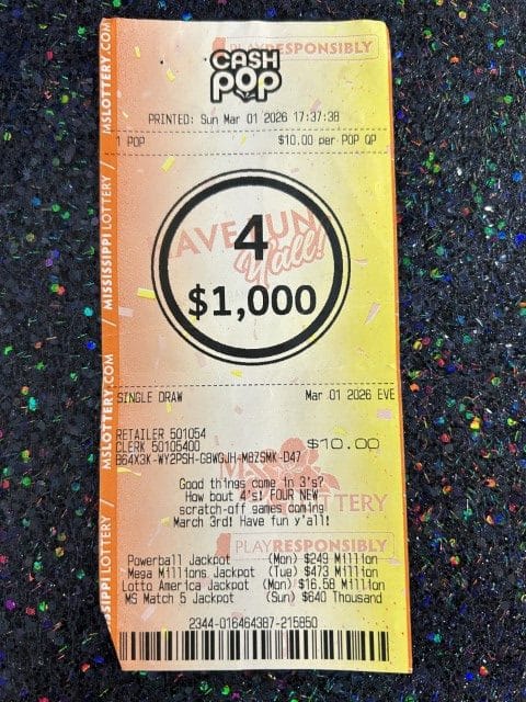 A Louisville woman won $1,000 on a Cash Pop ticket from Jr Stop in Columbus.