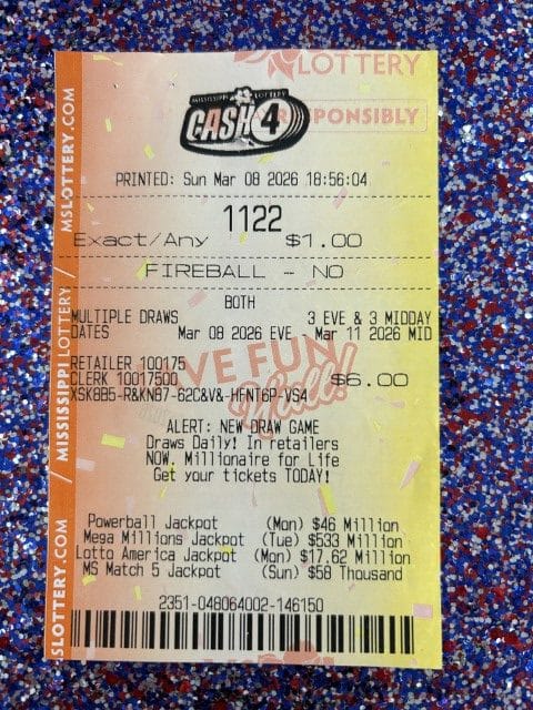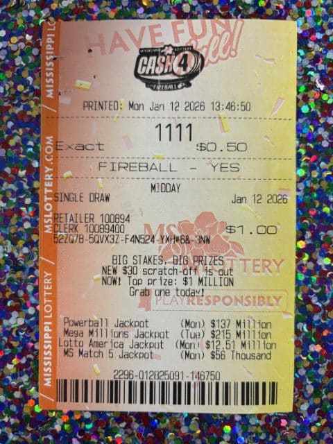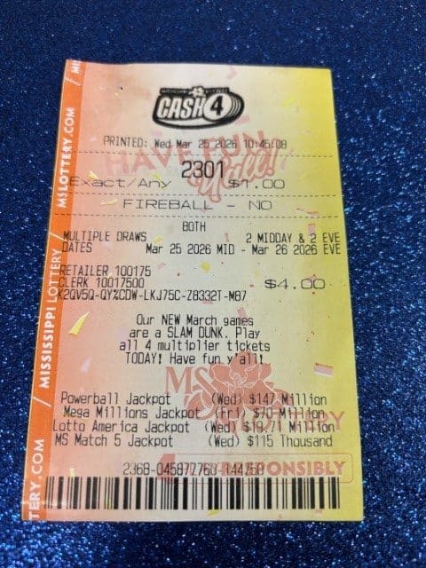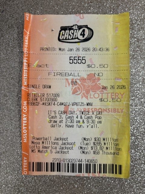 A Lucedale woman won $2,500 on a Cash 4 ticket from Jr Food Mart #473 in Lucedale.