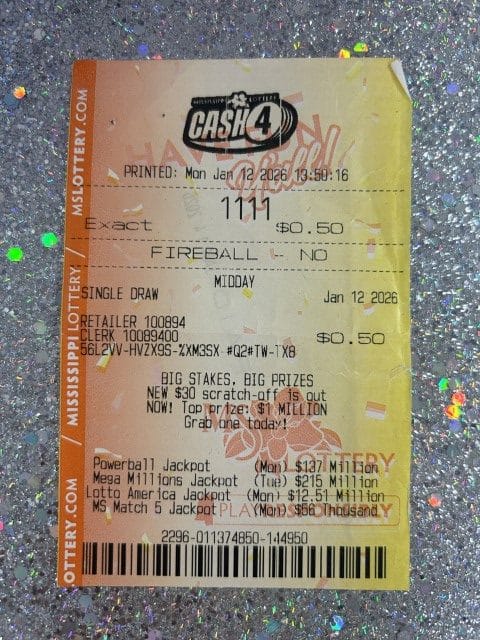 A Chickasaw, AL woman won $2,600 on a Cash 4 ticket from Town & Country in Lucedale.