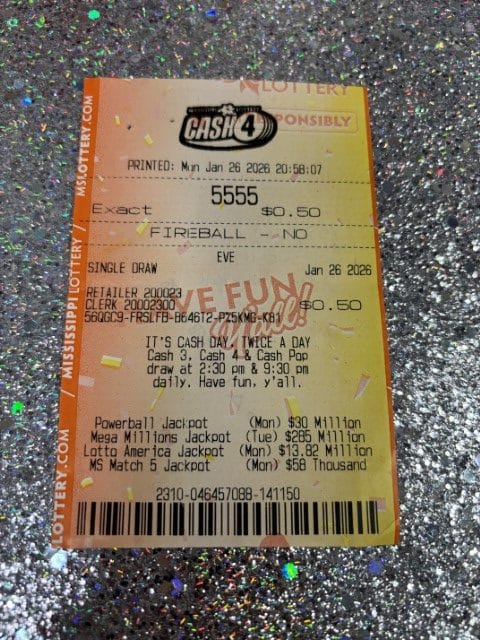 A Lucedale woman won $2,500 on a Cash 4 ticket from Wayne Lee’s #2 in Lucedale.