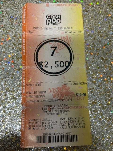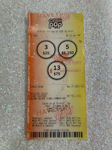 A Grand Bay, AL man won $2,500 on a Cash Pop ticket from The Oaks in Moss Point.