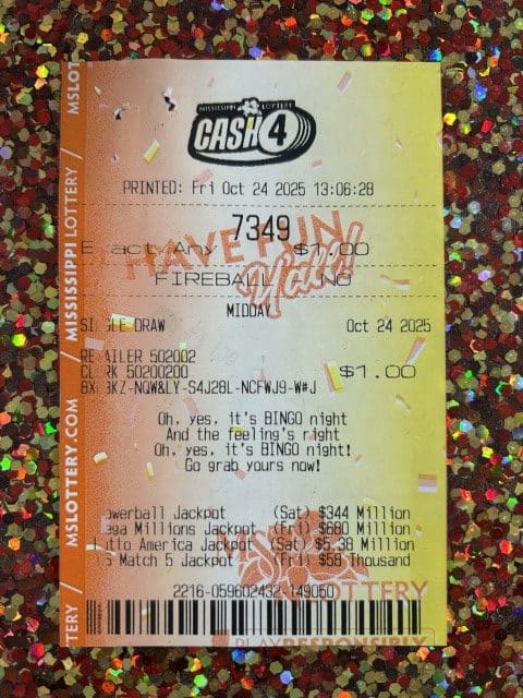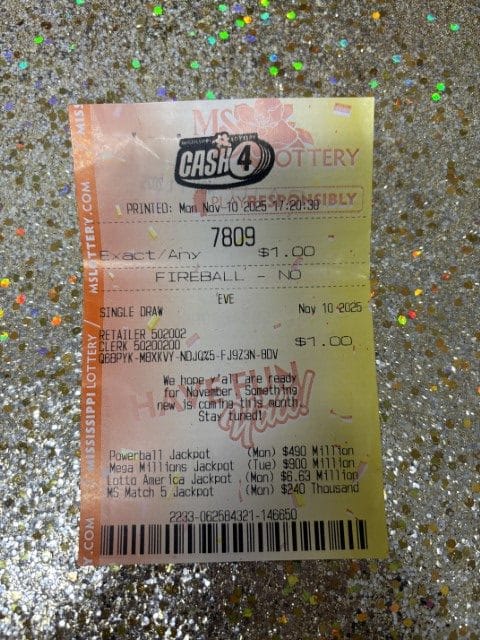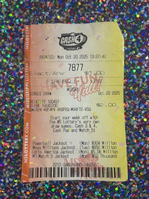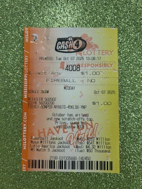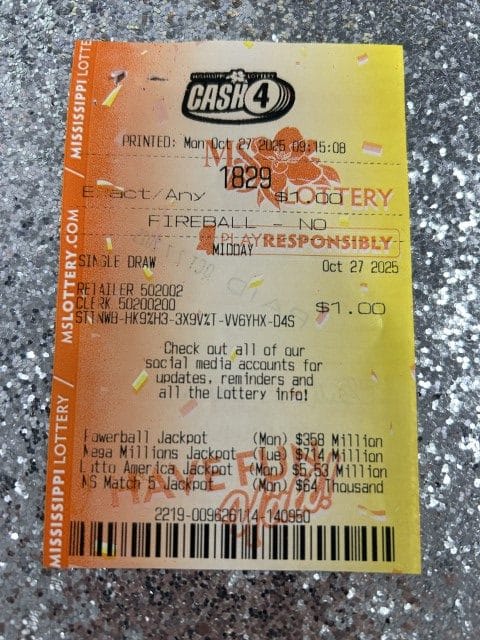 A Pearl man won $2,600 on a Cash 4 ticket from Fleet Way #106 in Pearl.