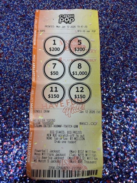 A Petal man won $2,500 on a Cash Pop ticket from Drive In Marathon in Petal.
