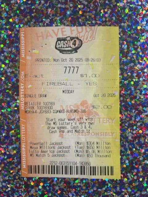 A Meridian woman won $5,000 on a scratch-off ticket from Midway Pit Stop in Raymond.