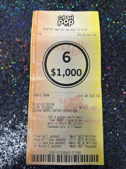 A Shaw woman won $1,000 on a Cash Pop ticket from Rick’s Express #ii in Shaw.
