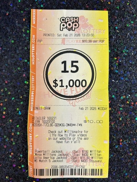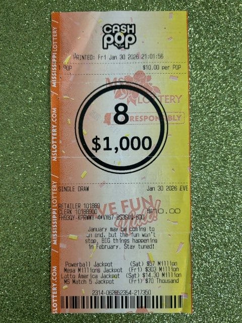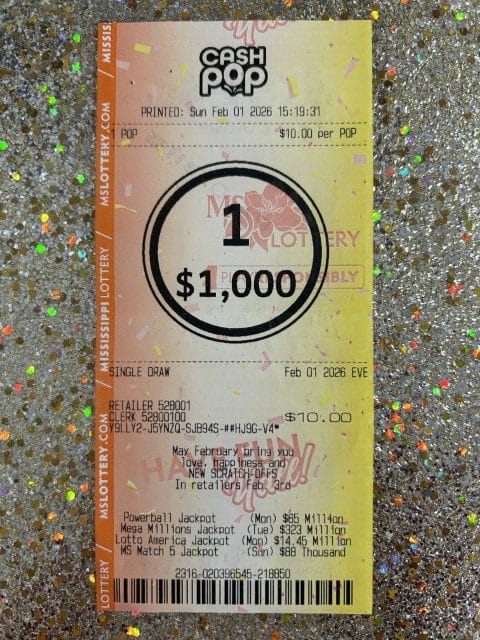 A Tupelo man won $1,000 on a Cash Pop ticket from Sun Express in Tupelo.