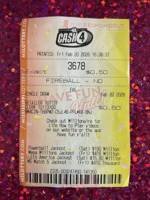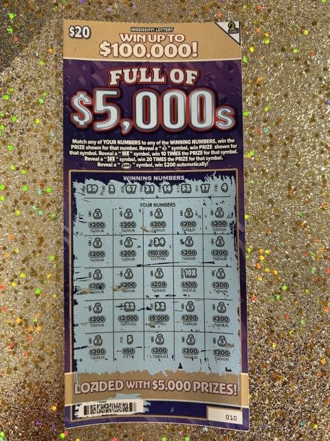 A Fulton man won $5,000 on a $20 ticket from Marathon Fast Stop in Tupelo.