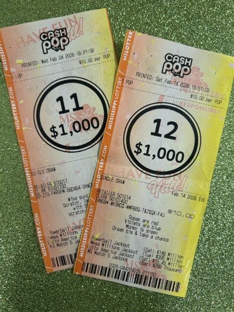 A Tupelo woman won $2,000 on two Cash Pop tickets from Bluesky #735 and Sprint Mart #45 in Tupelo.