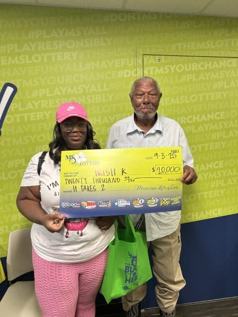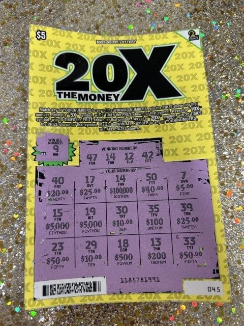 A Wiggins woman won $20,000 on a $2 scratch-off ticket from Keith’s Superstore #160 in Wiggins.
