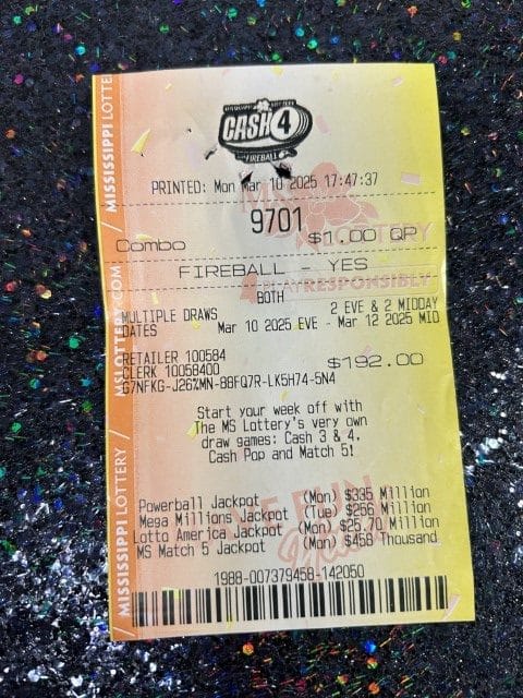 A Port Gibson woman won $2,700 on a Cash 4 ticket from Nick’s One Stop of Port Gibson in Port Gibson.
