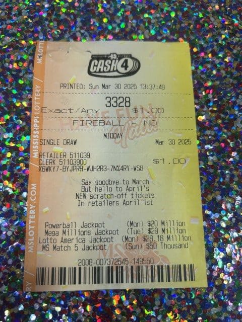 A Bay Springs man won $2,700 on a Cash 4 ticket from Keith’s Superstore #117 in Bay Springs.