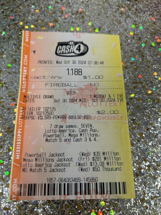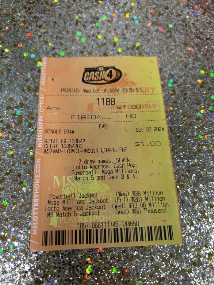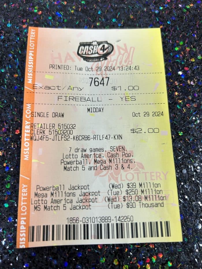 A Hattiesburg man won $2,600 on a Cash 4 ticket from Dandy Dan’s #517 in Hattiesburg.