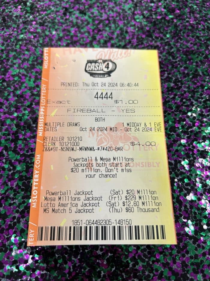 A Bogue Chitto woman won $675 on a Cash 4 ticket from A One Stop #12 in Brookhaven.