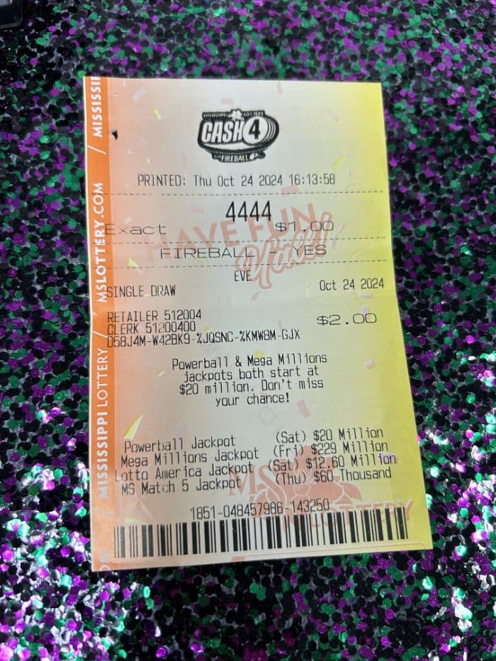 A Louin man won $2,700 on a Cash 4 ticket from Fast Stop #7 in Laurel.