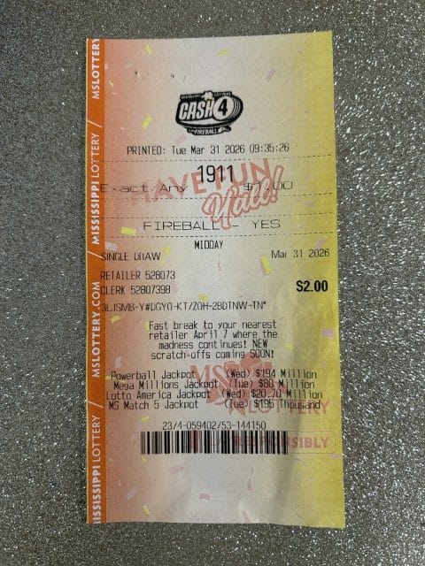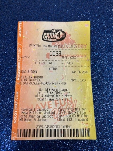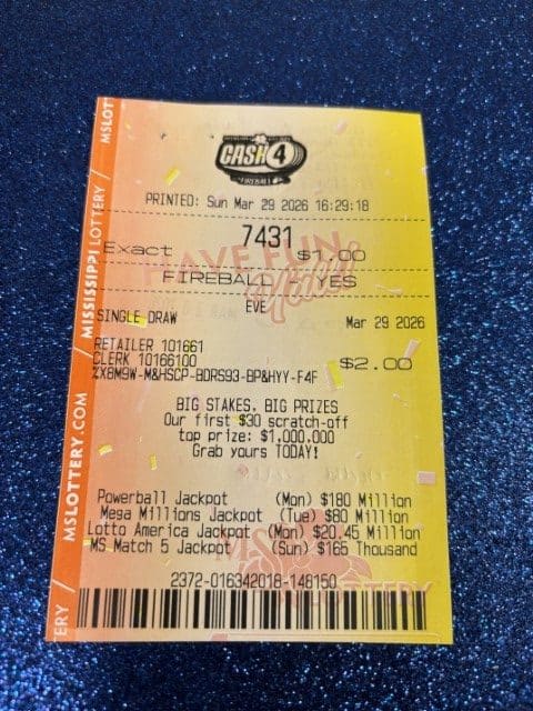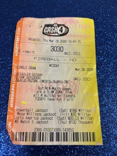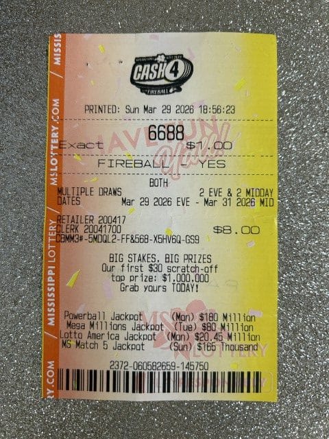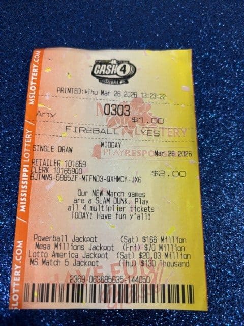 A Jackson man won $1,350 on a Cash 4 ticket from TA Express in McComb.