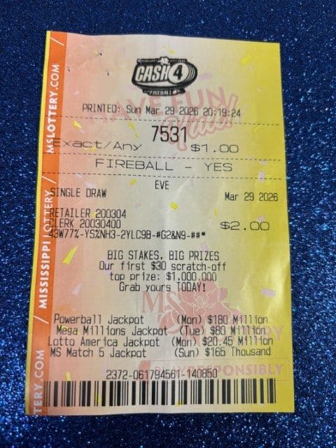 A D’ Iberville man won $5,000 on a Cash 4 ticket from Marathon in D’ Iberville.