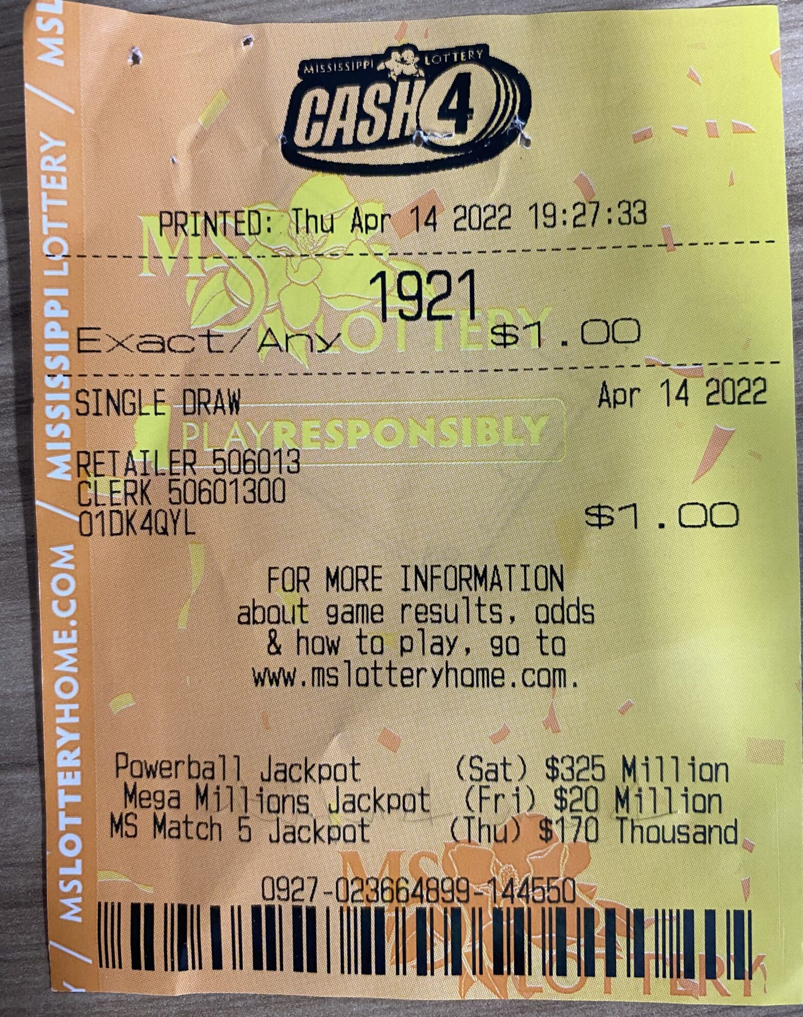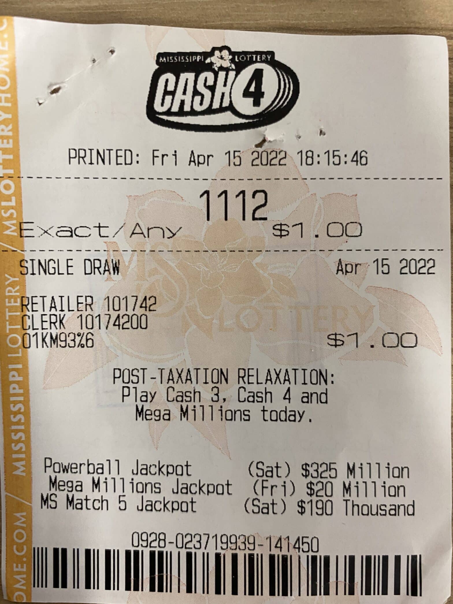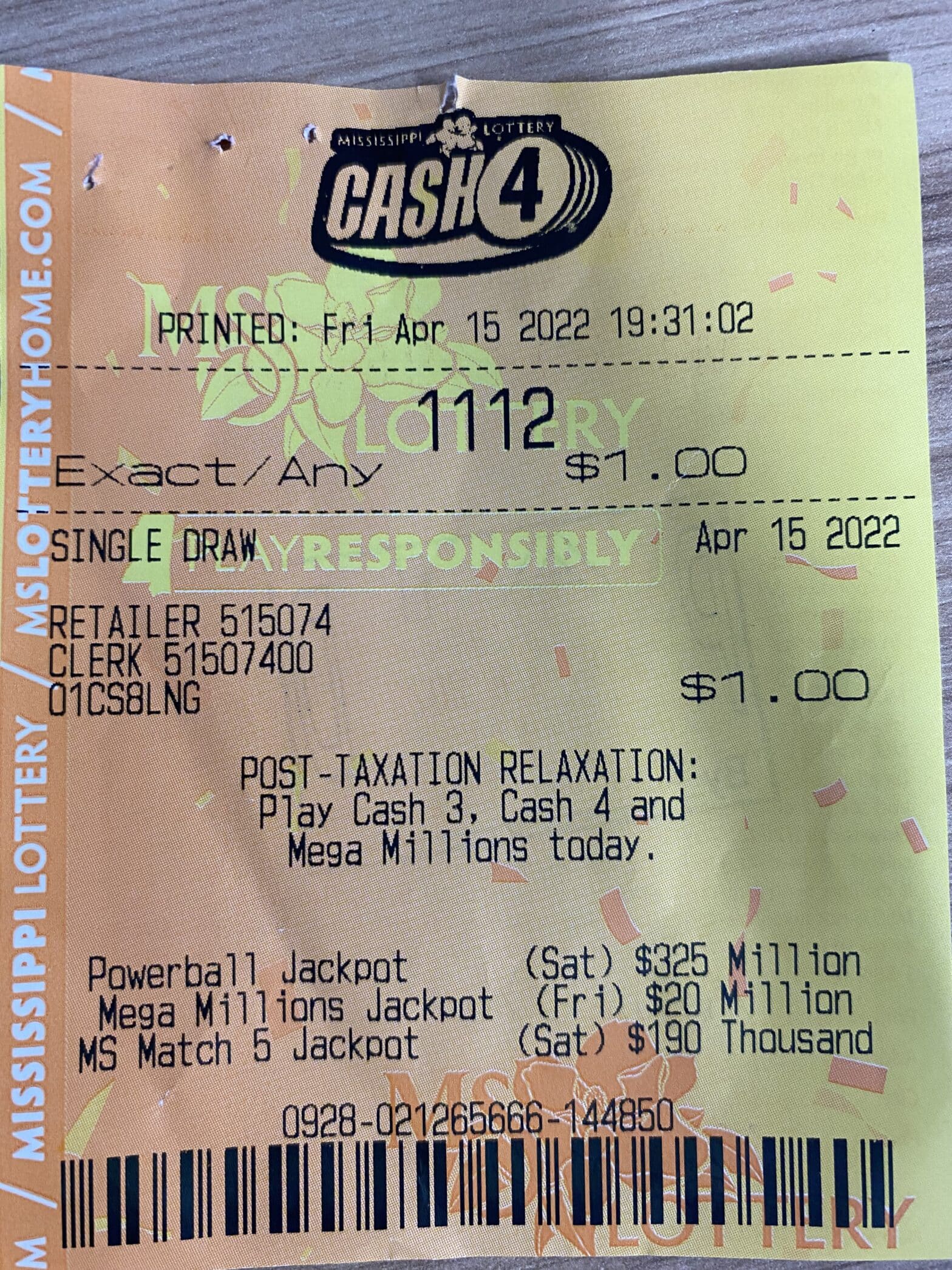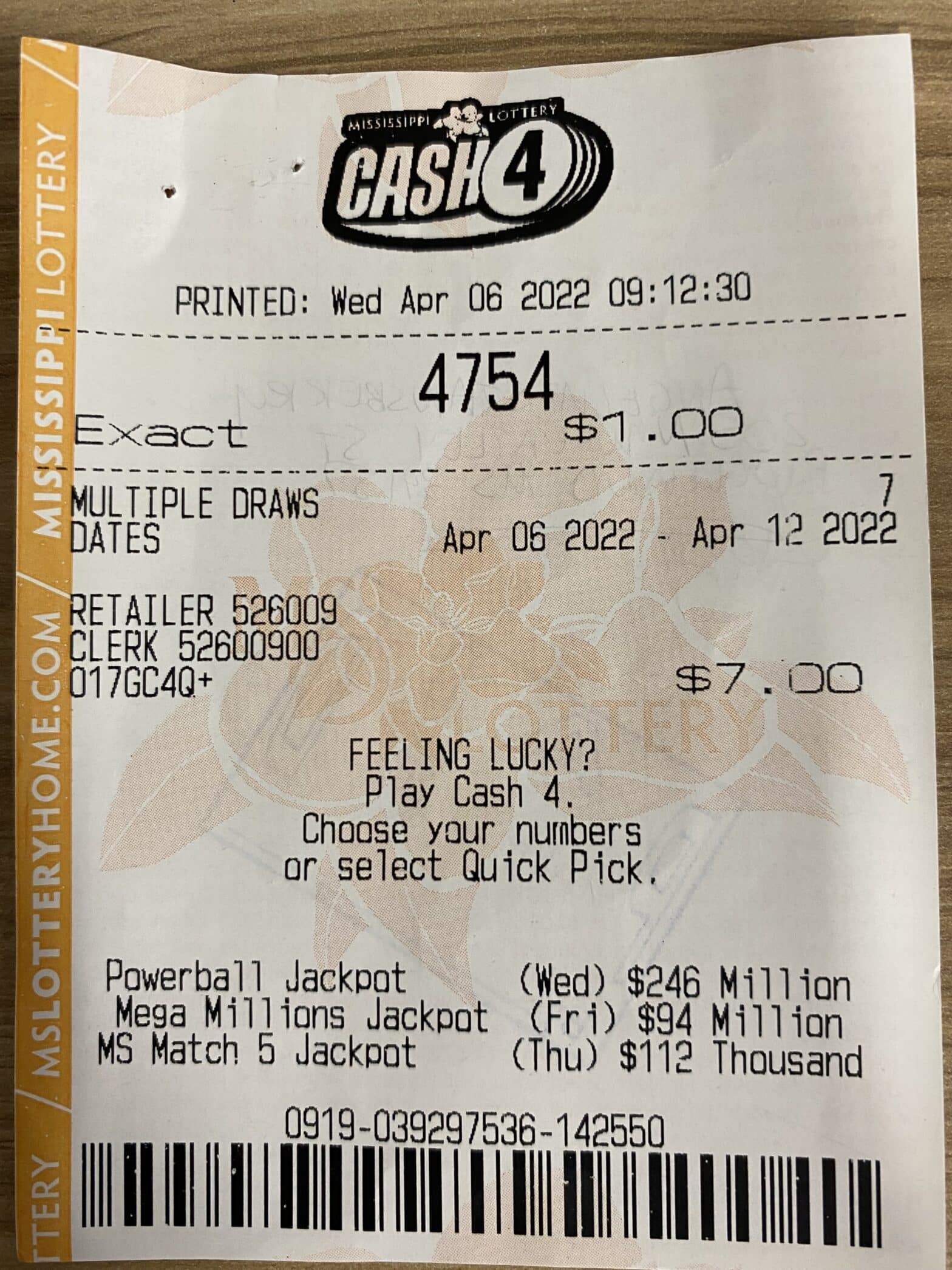 A Pearl River County man won $2,700 on a Cash 4 ticket purchased from Keith’s Superstore #194 on W. Union Rd., Carrier.