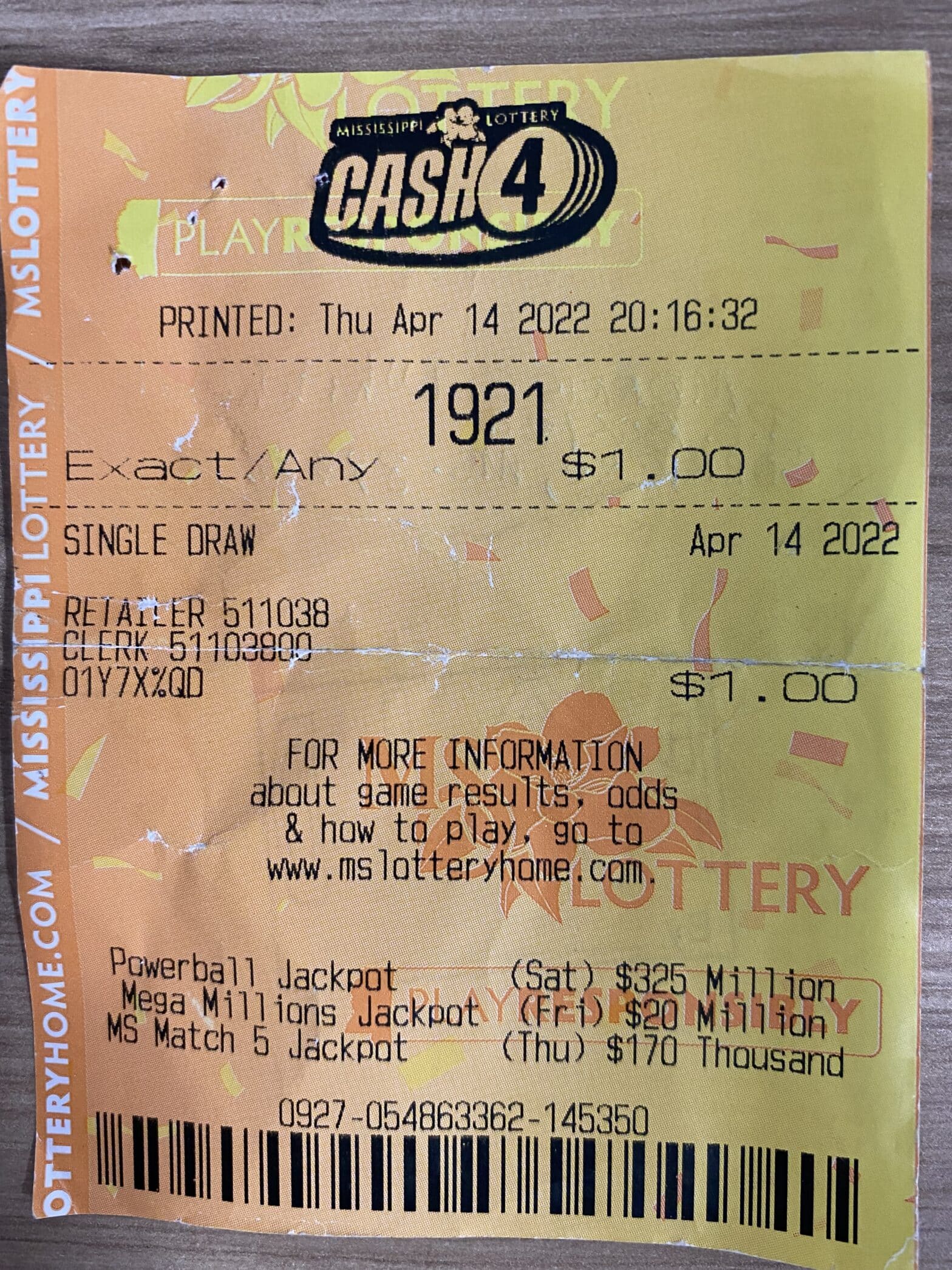 A Natchez man won $2,700 on a Cash 4 ticket purchased from BlueSky Store # 507 on North Shields LN, Natchez.