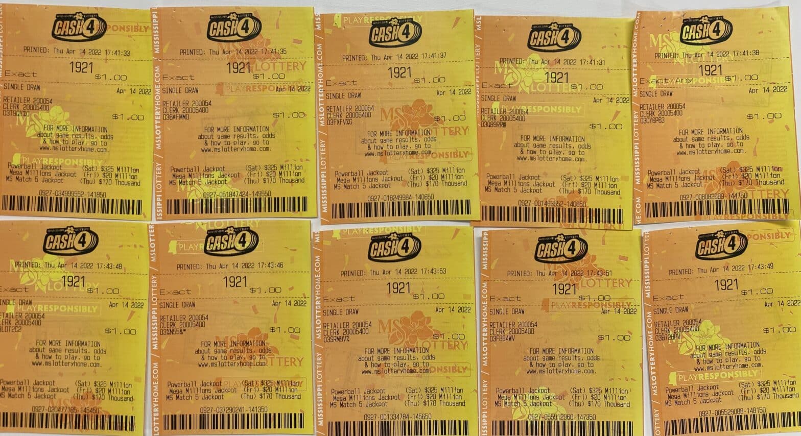 A Holmes County man won $47,700 on 10 Cash 4 tickets purchased from Kangaroo Crossing #102 on Depot St. Hwy. 12, Lexington.