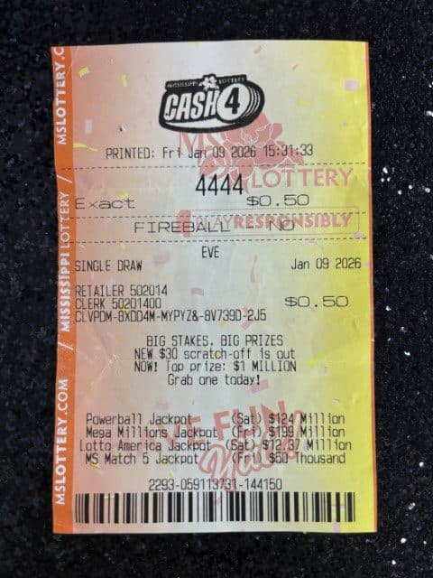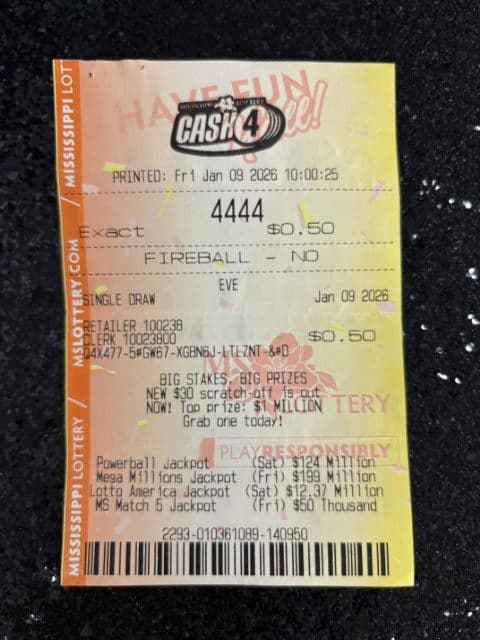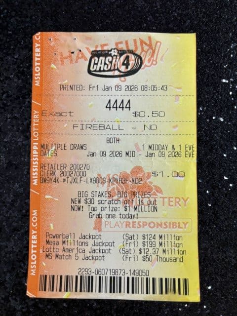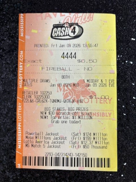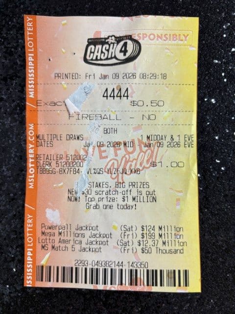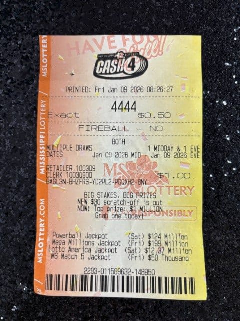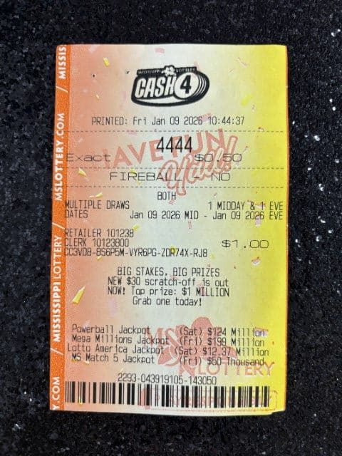 A Yazoo City man won $2,500 on a Cash 4 ticket from Gateway Express Dba Hardip Sing in Yazoo City.