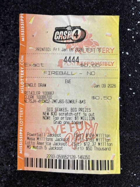 A Coahoma man won $2,500 on a Cash 4 ticket from Mikes Food And Gas in Senatobia.