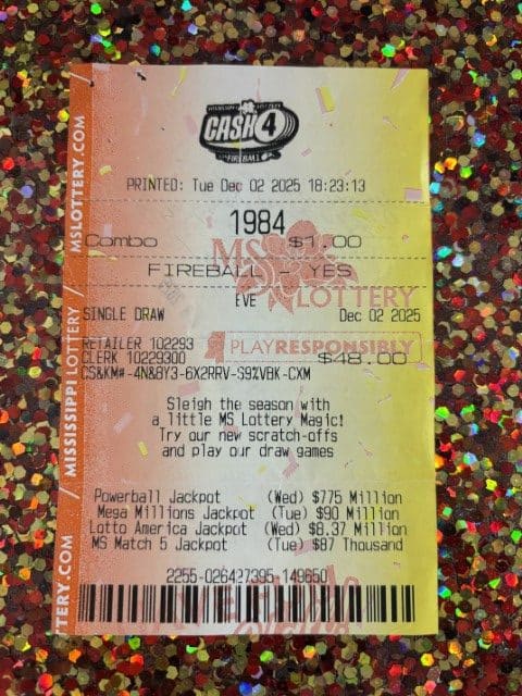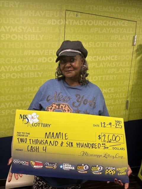 A Byhalia woman won $2,600 on a Cash 4 ticket from Piggly Wiggly 3419 in Olive Branch.