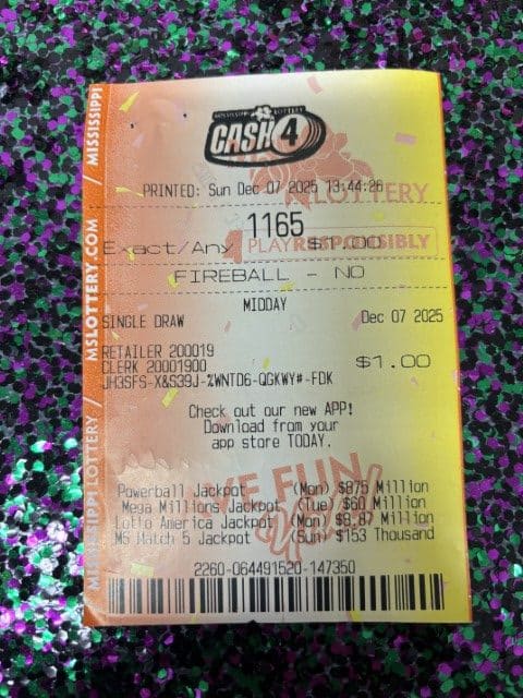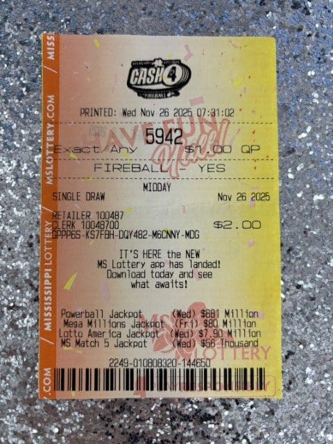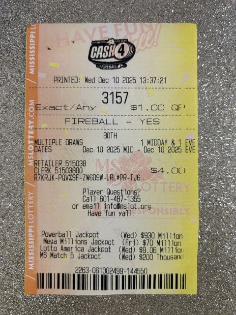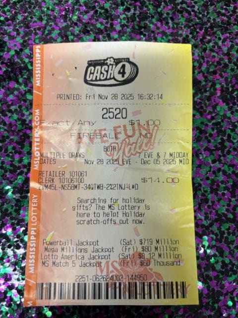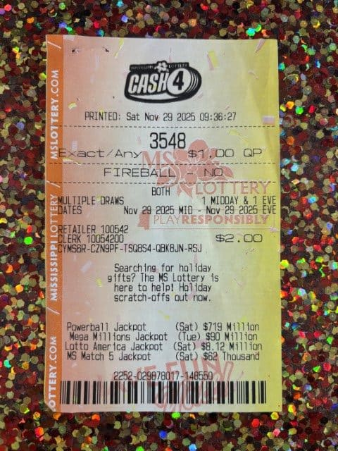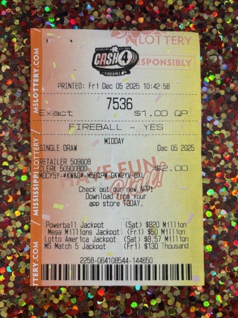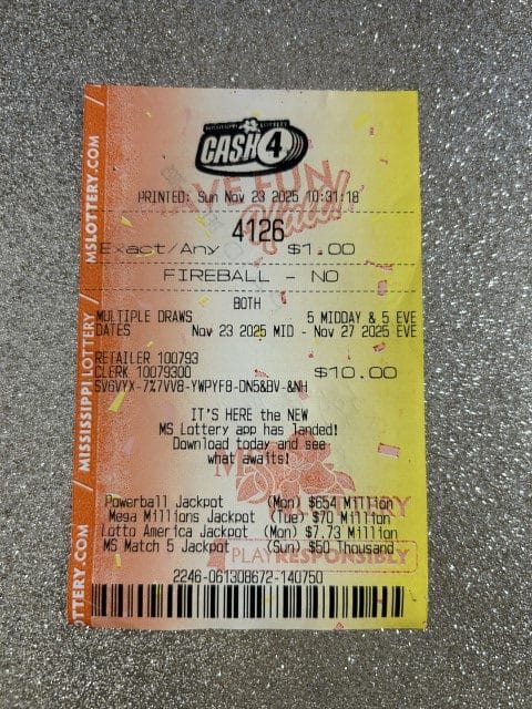 A Petal man won $2,600 on a Cash 4 ticket from Circle K Store #2723395 in Hattiesburg.