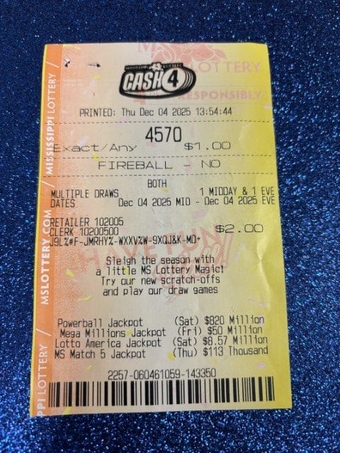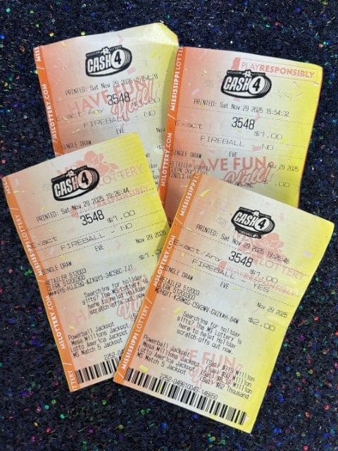 A Leakesville man won $15,200 on four Cash 4 tickets from Donco #9 in Hattiesburg and Clark Oil Company #3 in Buckatunna.
