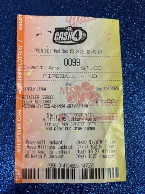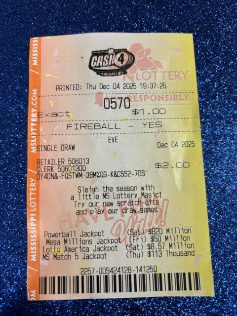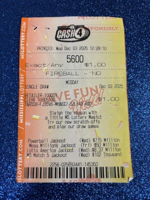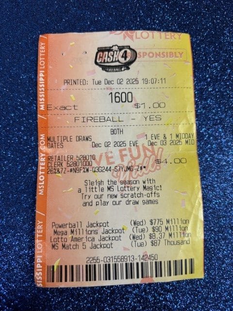 A D’Iberville man won $12,700 on two Cash 4 tickets from Marathon in D’Iberville.