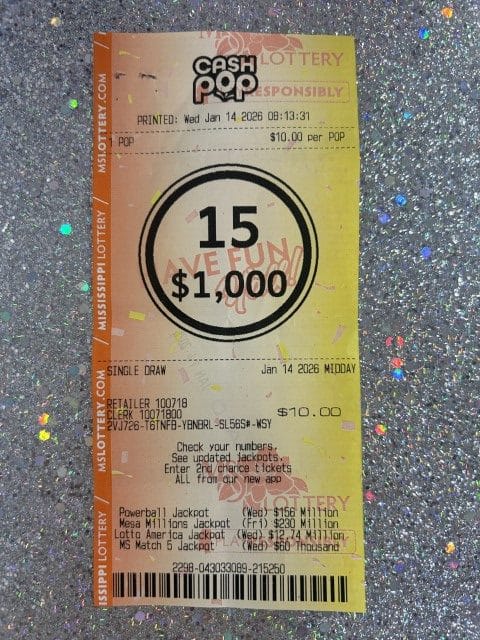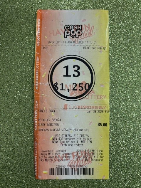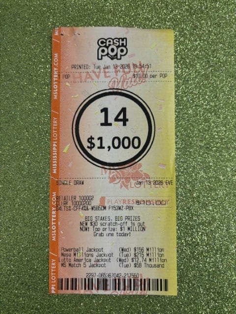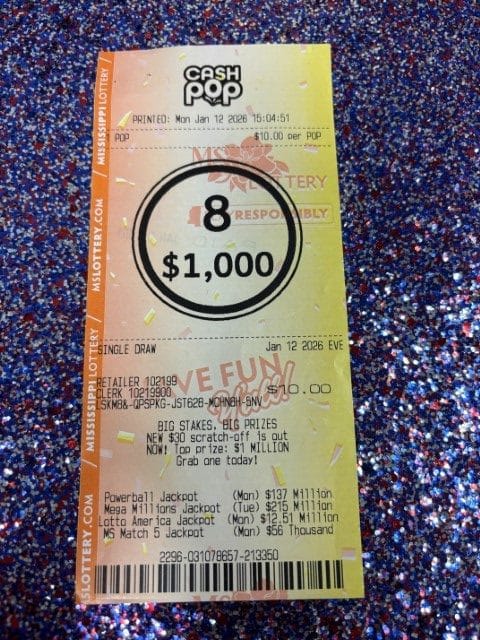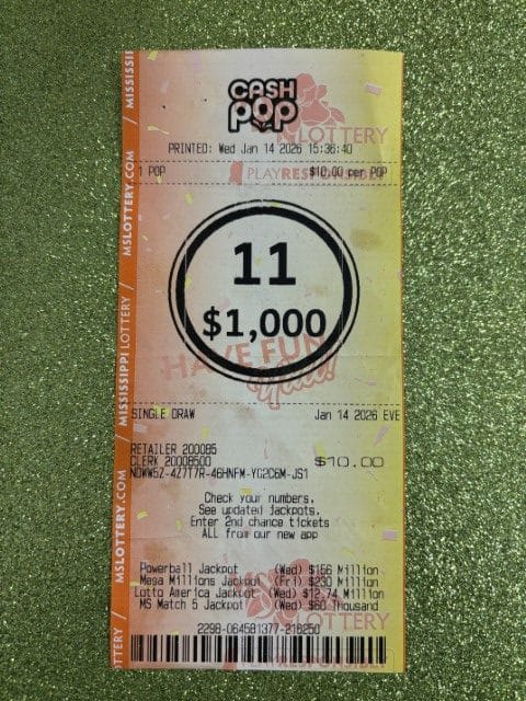 A Yazoo City man won $1,000 on a Cash Pop ticket from Jerry’s Quick Stop in Yazoo City.