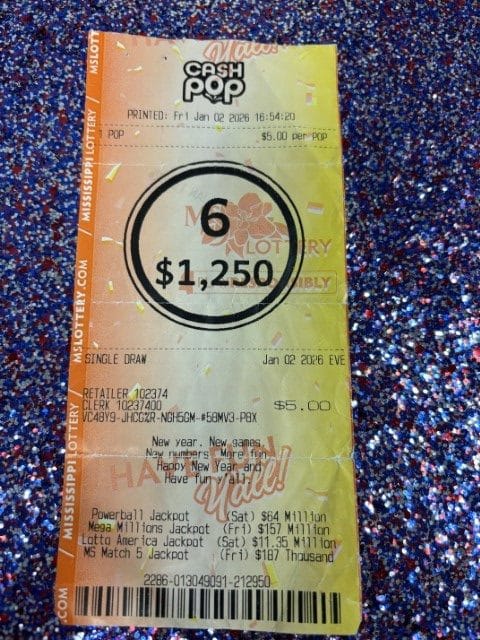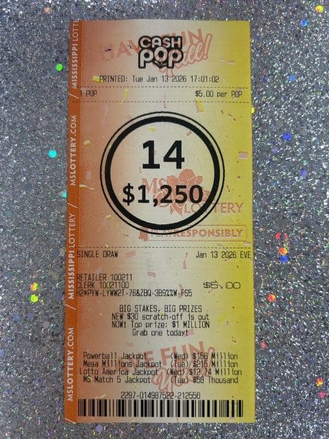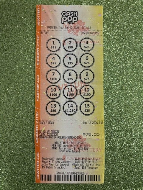 A Brandon woman won $1,250 on a Cash Pop ticket from Walmart Superstore #2755 in Flowood.
