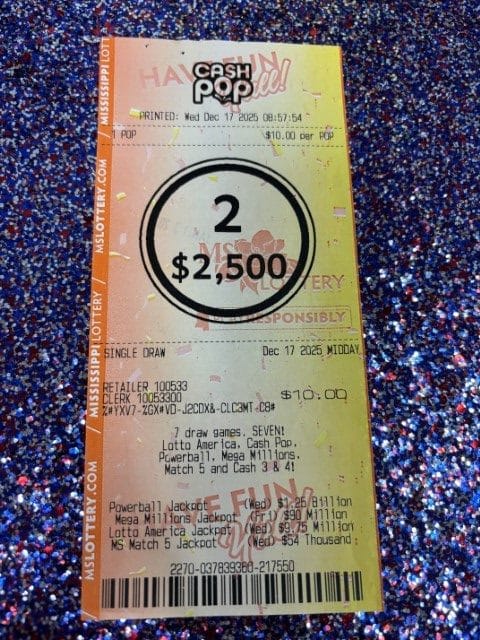 A Jackson woman won $2,500 on a Cash Pop ticket from Old Town Market in Ridgeland.