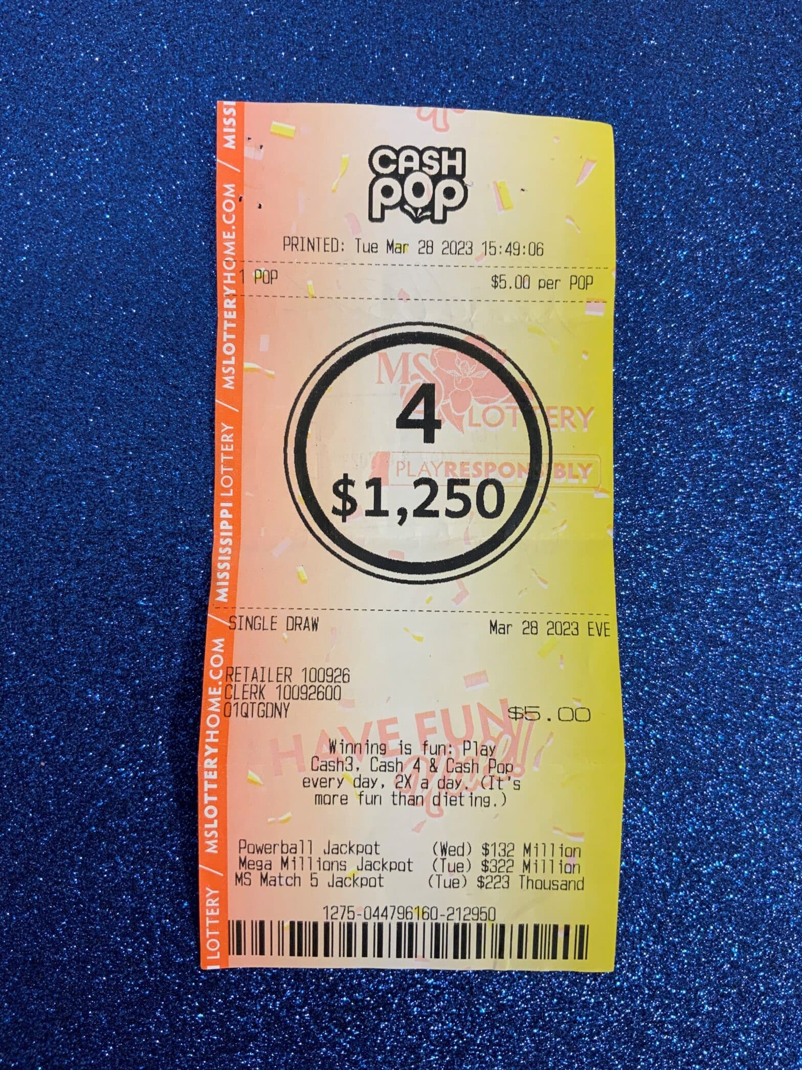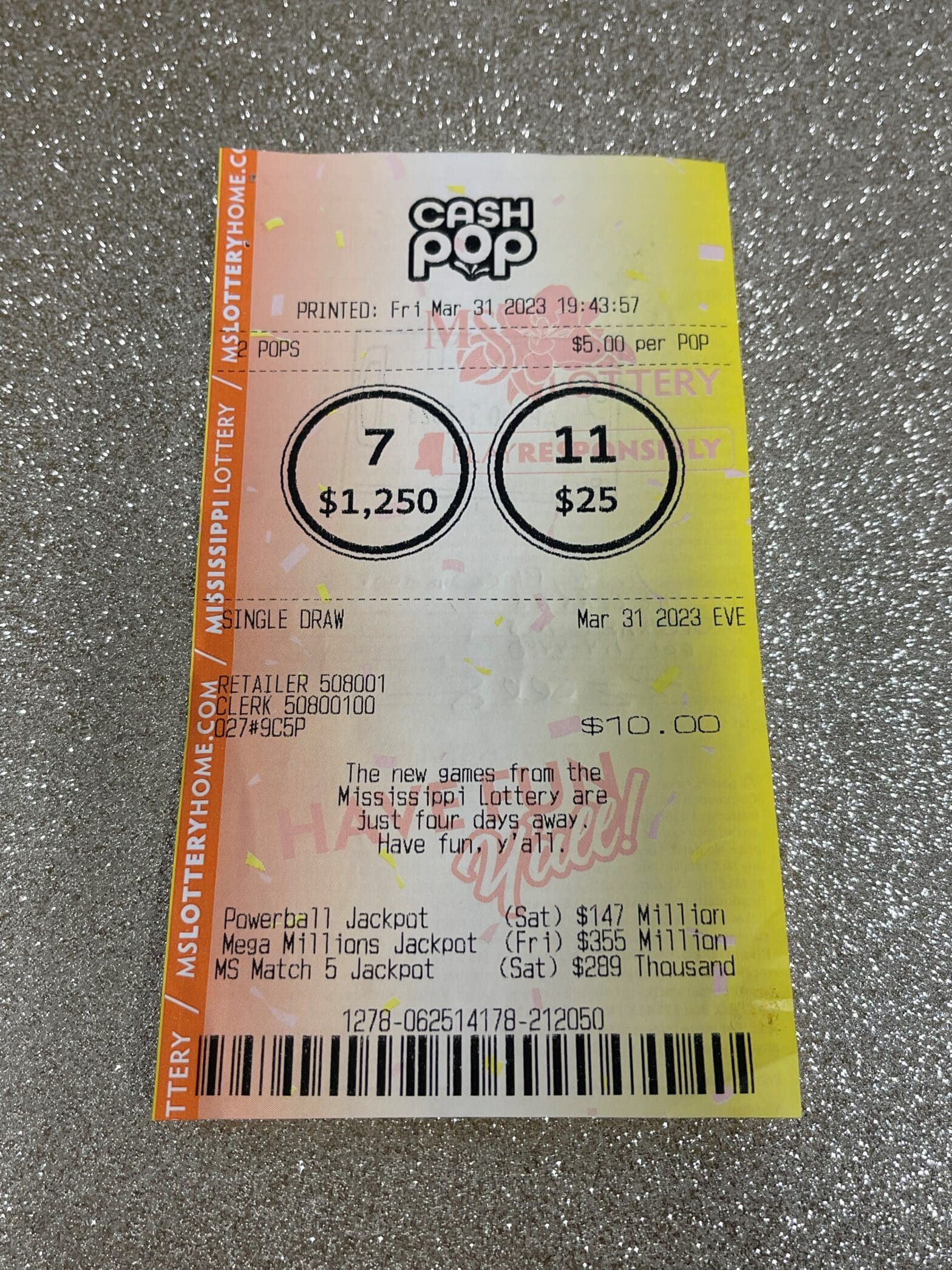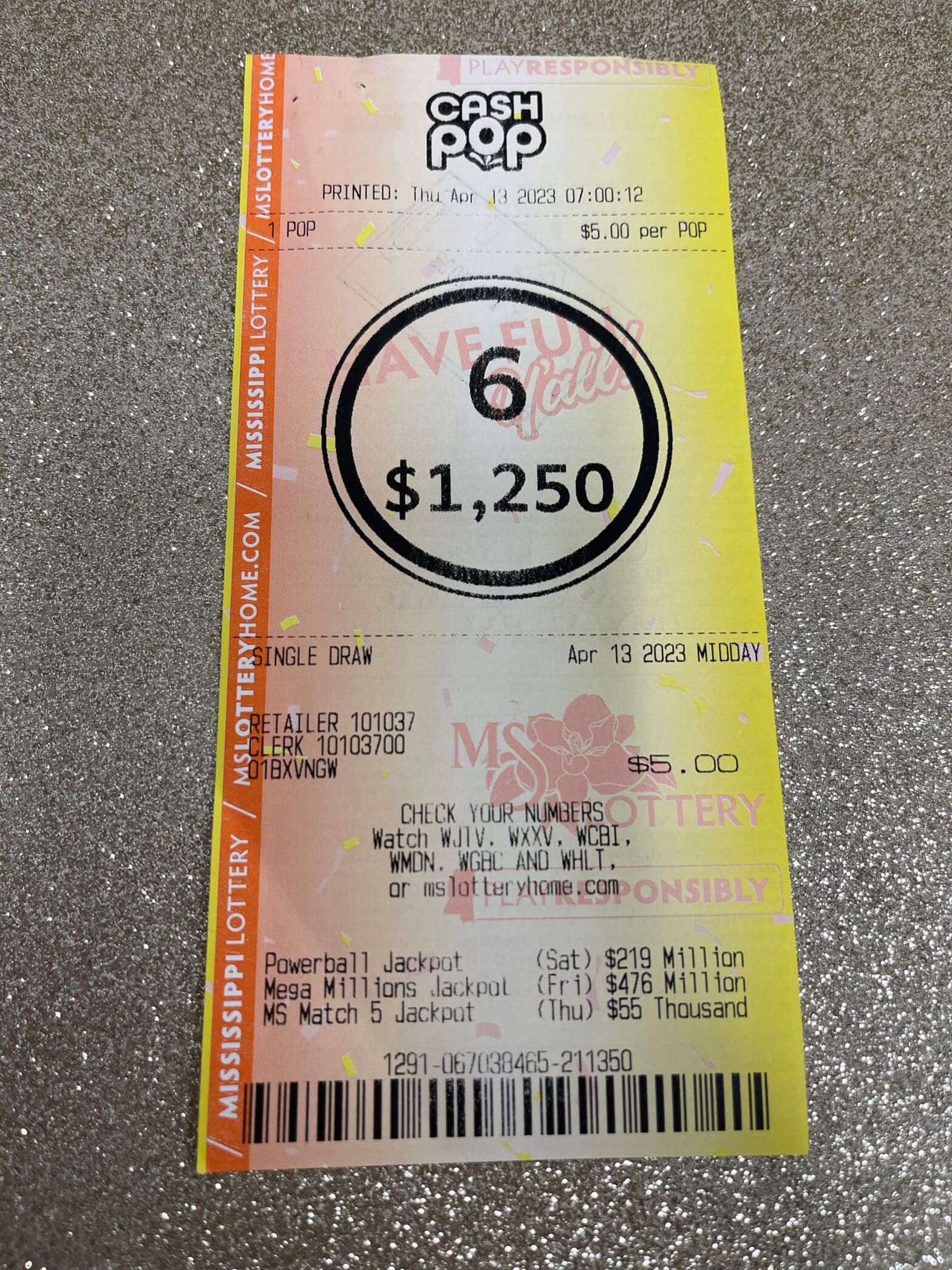 A Brookhaven man won $1,250 on a Cash Pop ticket purchased from B-Kwik #1 in Brookhaven.