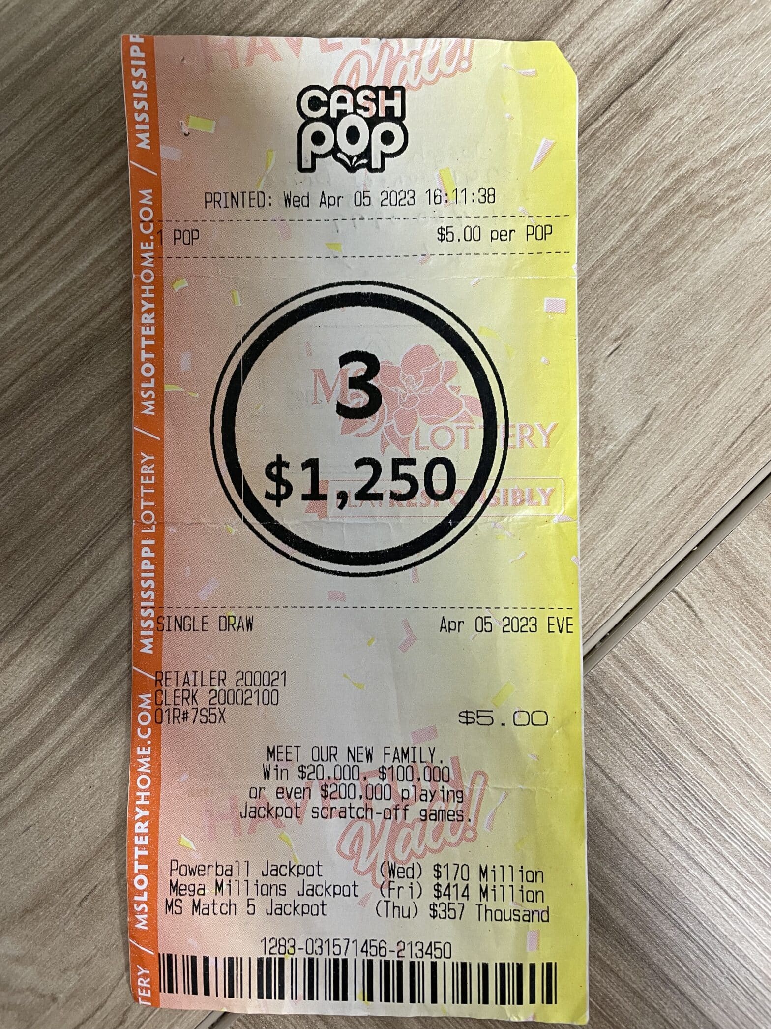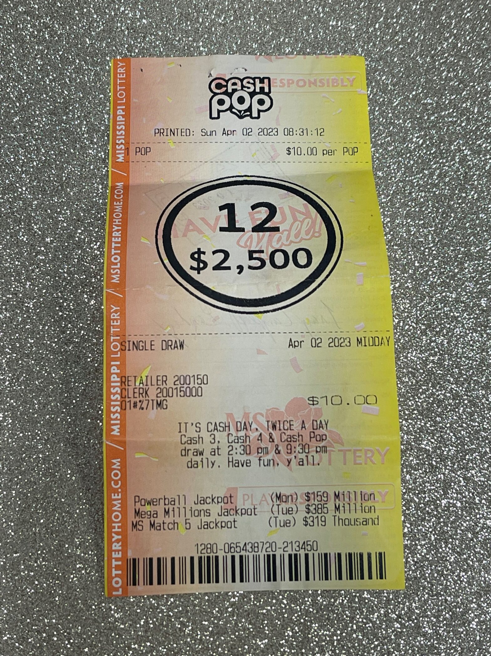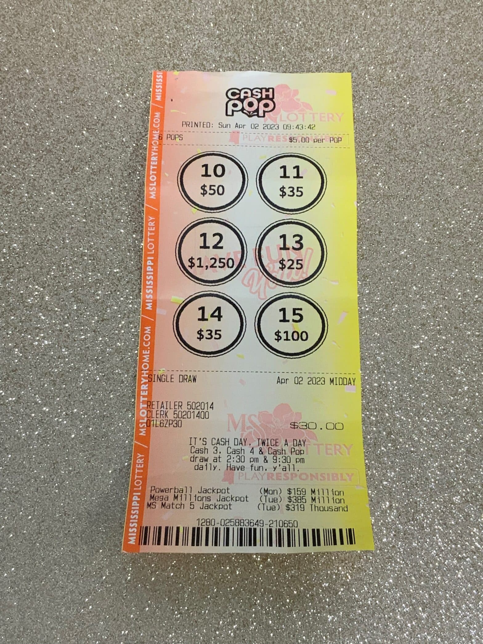 A Brookhaven man won $1,250 on a Cash Pop ticket purchased from B-Kwik #1 in Brookhaven.